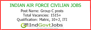 Total 1515 Group C Civilian vacancies opening at the various Indian Air Force Stations/ Units.
